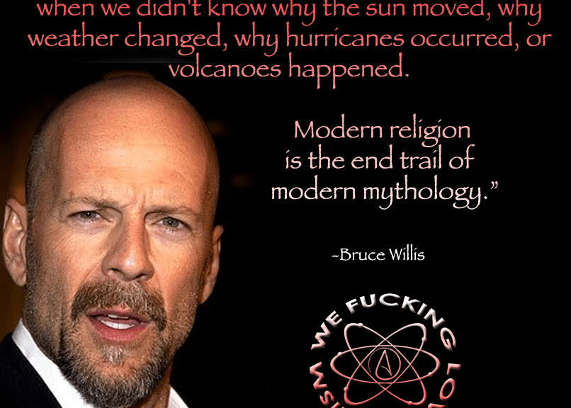Atheism, Bruce Willis, Quotes End trail of modern mythology Image October 31, 2014 We Fucking Love Atheism Leave a comment
