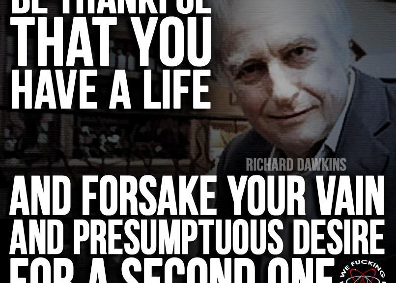 Atheism, Quotes, Richard Dawkins Be thankful you have a life Image October 14, 2014 We Fucking Love Atheism Leave a comment Share this: Click to share on X (Opens in new window) X Click to share on Facebook (Opens in new window) Facebook Click to share on Pinterest (Opens in new window) Pinterest Click to share on Tumblr (Opens in new window) Tumblr Click to share on Reddit (Opens in new window) Reddit Related