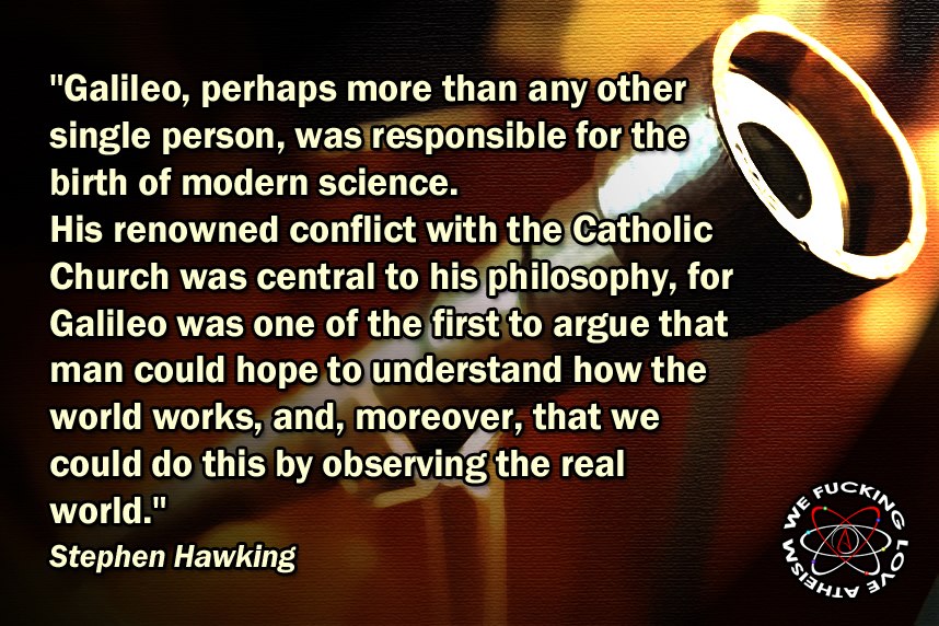 Atheism, Quotes, Science, Stephen Hawking Galileo – Father of modern science Image October 15, 2014 We Fucking Love Atheism Leave a comment Share this: Click to share on X (Opens in new window) X Click to share on Facebook (Opens in new window) Facebook Click to share on Pinterest (Opens in new window) Pinterest Click to share on Tumblr (Opens in new window) Tumblr Click to share on Reddit (Opens in new window) Reddit Related