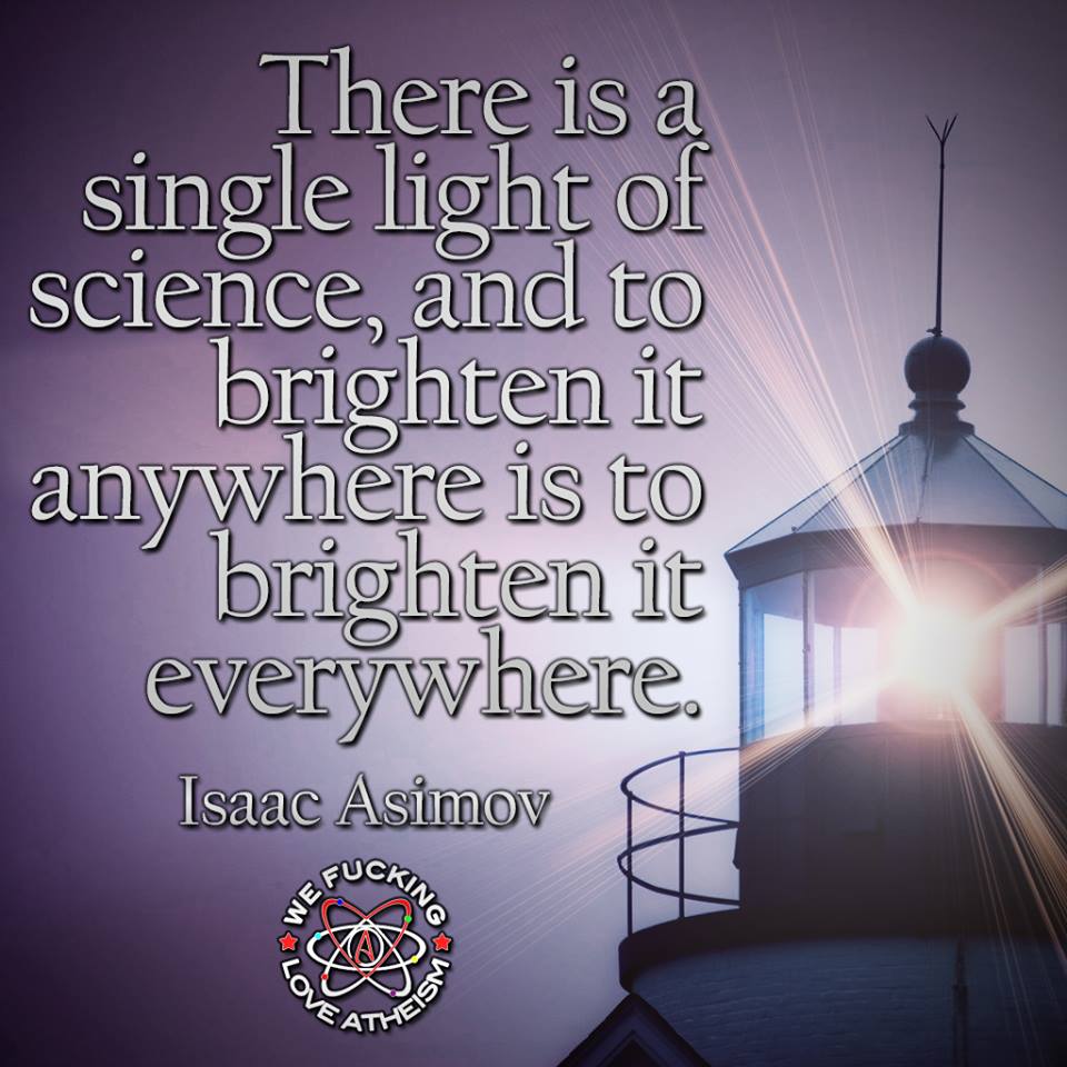Atheism, Isaac Asimov, Quotes, Science Science is the light Image October 15, 2014 We Fucking Love Atheism Leave a comment Share this: Click to share on X (Opens in new window) X Click to share on Facebook (Opens in new window) Facebook Click to share on Pinterest (Opens in new window) Pinterest Click to share on Tumblr (Opens in new window) Tumblr Click to share on Reddit (Opens in new window) Reddit Related