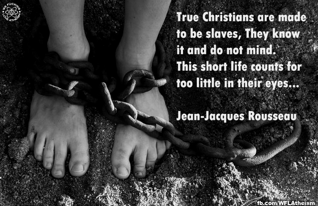 Atheism, Quotes True christians are slaves Image October 15, 2014 We Fucking Love Atheism Leave a comment Share this: Click to share on X (Opens in new window) X Click to share on Facebook (Opens in new window) Facebook Click to share on Pinterest (Opens in new window) Pinterest Click to share on Tumblr (Opens in new window) Tumblr Click to share on Reddit (Opens in new window) Reddit Related