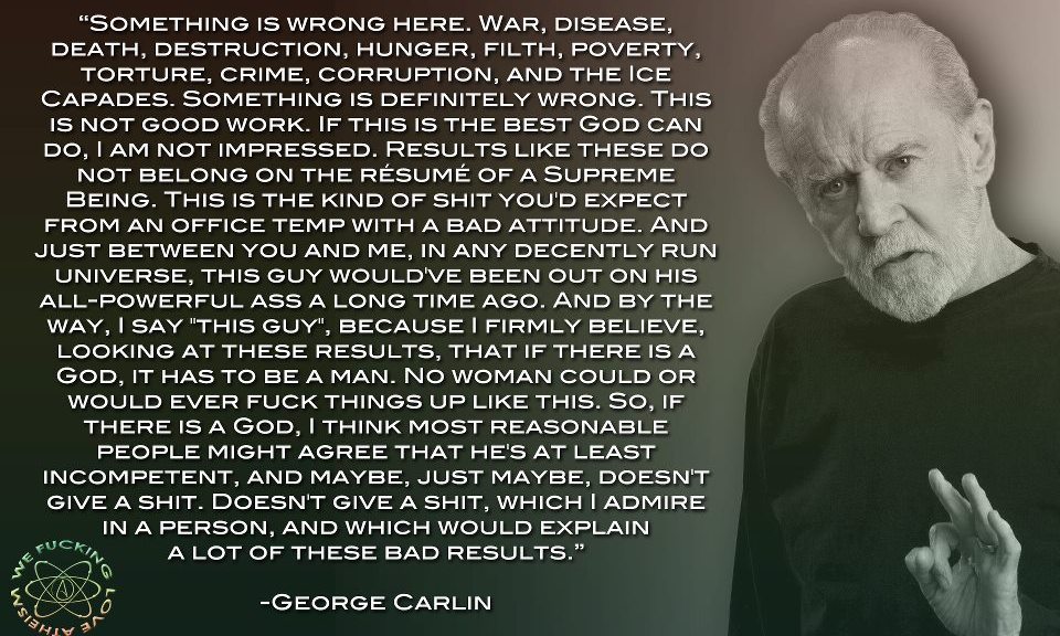 Atheism, George Carlin, Humor Something is wrong here… Image October 16, 2014 We Fucking Love Atheism Leave a comment Share this: Click to share on X (Opens in new window) X Click to share on Facebook (Opens in new window) Facebook Click to share on Pinterest (Opens in new window) Pinterest Click to share on Tumblr (Opens in new window) Tumblr Click to share on Reddit (Opens in new window) Reddit Related
