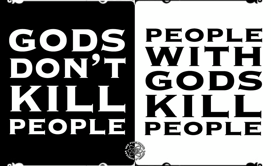 Atheism People with gods kill people Image October 24, 2014 We Fucking Love Atheism Leave a comment Share this: Click to share on X (Opens in new window) X Click to share on Facebook (Opens in new window) Facebook Click to share on Pinterest (Opens in new window) Pinterest Click to share on Tumblr (Opens in new window) Tumblr Click to share on Reddit (Opens in new window) Reddit Related