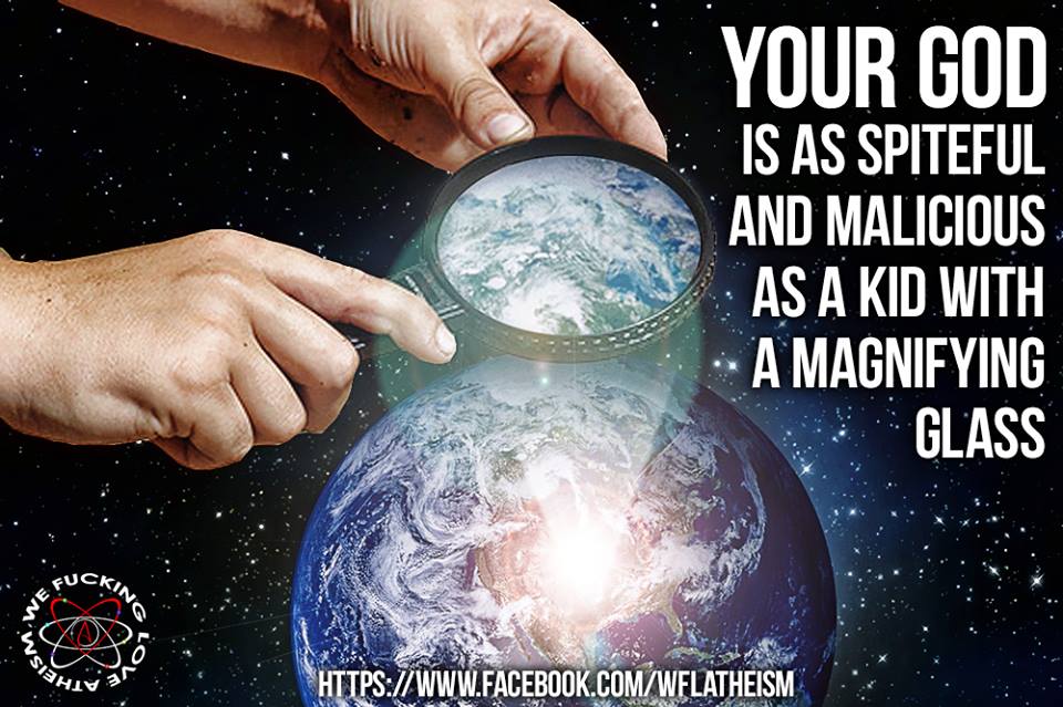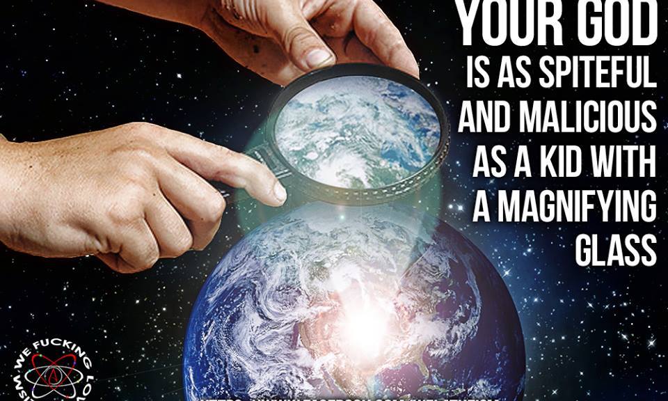 Atheism, Humor Spiteful child god Image October 24, 2014 We Fucking Love Atheism Leave a comment Share this: Click to share on X (Opens in new window) X Click to share on Facebook (Opens in new window) Facebook Click to share on Pinterest (Opens in new window) Pinterest Click to share on Tumblr (Opens in new window) Tumblr Click to share on Reddit (Opens in new window) Reddit Related