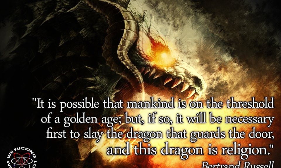 Atheism, Bertrand Russell, Quotes Religion is like a dragon. Image October 14, 2014 We Fucking Love Atheism Leave a comment