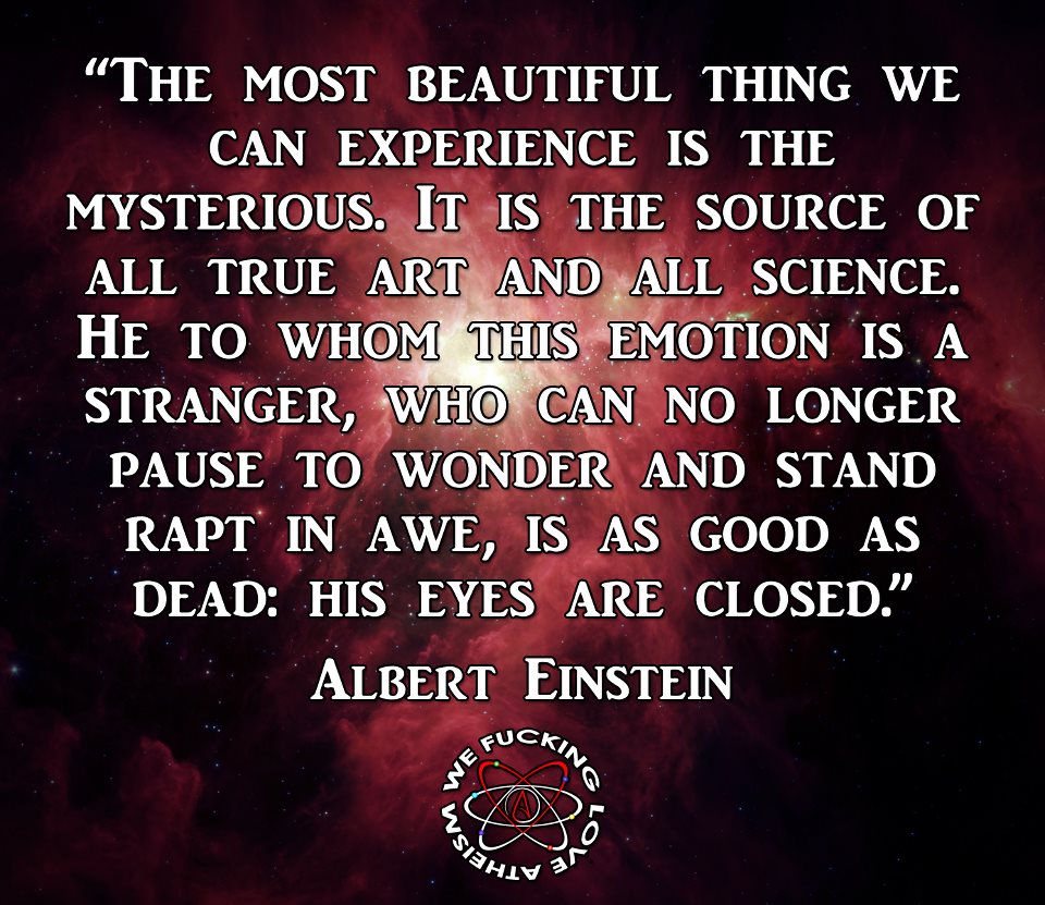 Agnostic, Albert Einstein, Atheism, Quotes Nature and our own being Image October 29, 2014 We Fucking Love Atheism Leave a comment