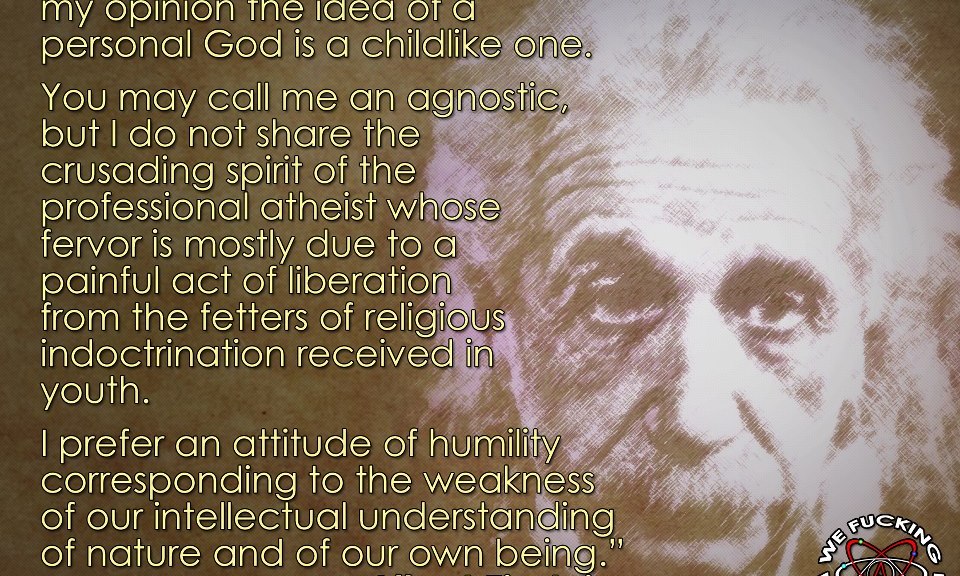 Agnostic, Albert Einstein, Atheism, Quotes, Science Unbounded admiration Image October 30, 2014 We Fucking Love Atheism Leave a comment