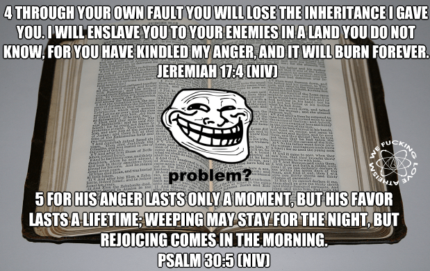 Atheism, Bible Verses Problem? Angry or not? Image November 6, 2014 We Fucking Love Atheism Leave a comment Share this: Click to share on X (Opens in new window) X Click to share on Facebook (Opens in new window) Facebook Click to share on Pinterest (Opens in new window) Pinterest Click to share on Tumblr (Opens in new window) Tumblr Click to share on Reddit (Opens in new window) Reddit Related