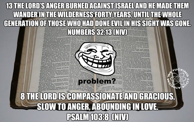 Atheism, Bible Verses Problem? Compassionate or not? Image November 6, 2014 We Fucking Love Atheism Leave a comment Share this: Click to share on X (Opens in new window) X Click to share on Facebook (Opens in new window) Facebook Click to share on Pinterest (Opens in new window) Pinterest Click to share on Tumblr (Opens in new window) Tumblr Click to share on Reddit (Opens in new window) Reddit Related