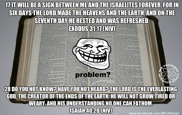 Atheism, Bible Verses Problem? Tired or not? Image November 6, 2014 We Fucking Love Atheism Leave a comment Share this: Click to share on X (Opens in new window) X Click to share on Facebook (Opens in new window) Facebook Click to share on Pinterest (Opens in new window) Pinterest Click to share on Tumblr (Opens in new window) Tumblr Click to share on Reddit (Opens in new window) Reddit Related