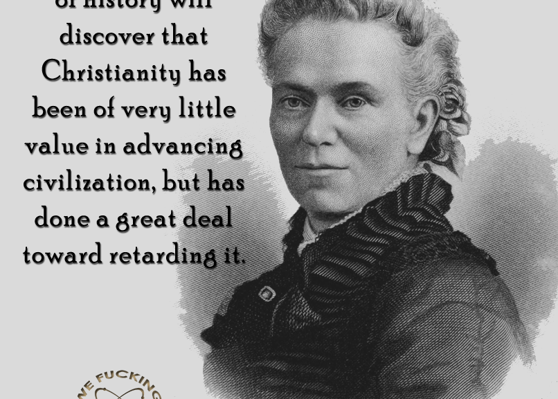 Female Voices, Matilda Joslyn Gage, Quotes Christianity has done little Image November 12, 2014 We Fucking Love Atheism Leave a comment Share this: Click to share on X (Opens in new window) X Click to share on Facebook (Opens in new window) Facebook Click to share on Pinterest (Opens in new window) Pinterest Click to share on Tumblr (Opens in new window) Tumblr Click to share on Reddit (Opens in new window) Reddit Related