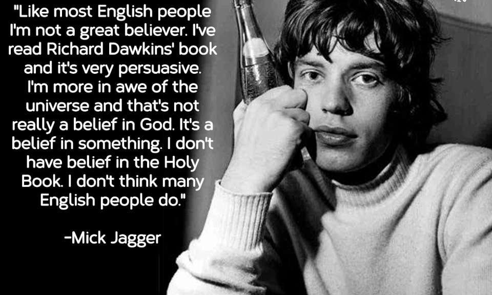 Atheism, Mick Jagger, Quotes In awe of the universe Image November 12, 2014 We Fucking Love Atheism Leave a comment Share this: Click to share on X (Opens in new window) X Click to share on Facebook (Opens in new window) Facebook Click to share on Pinterest (Opens in new window) Pinterest Click to share on Tumblr (Opens in new window) Tumblr Click to share on Reddit (Opens in new window) Reddit Related