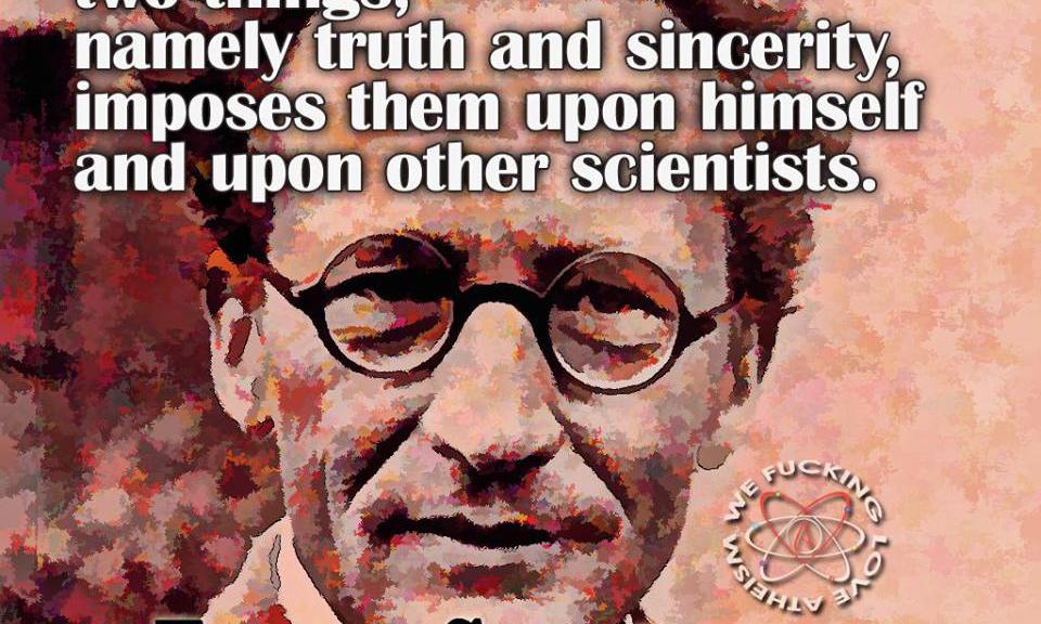 Erwin Schrödinger, Quotes, Science Truth and sincerity Image November 12, 2014 We Fucking Love Atheism Leave a comment Share this: Click to share on X (Opens in new window) X Click to share on Facebook (Opens in new window) Facebook Click to share on Pinterest (Opens in new window) Pinterest Click to share on Tumblr (Opens in new window) Tumblr Click to share on Reddit (Opens in new window) Reddit Related