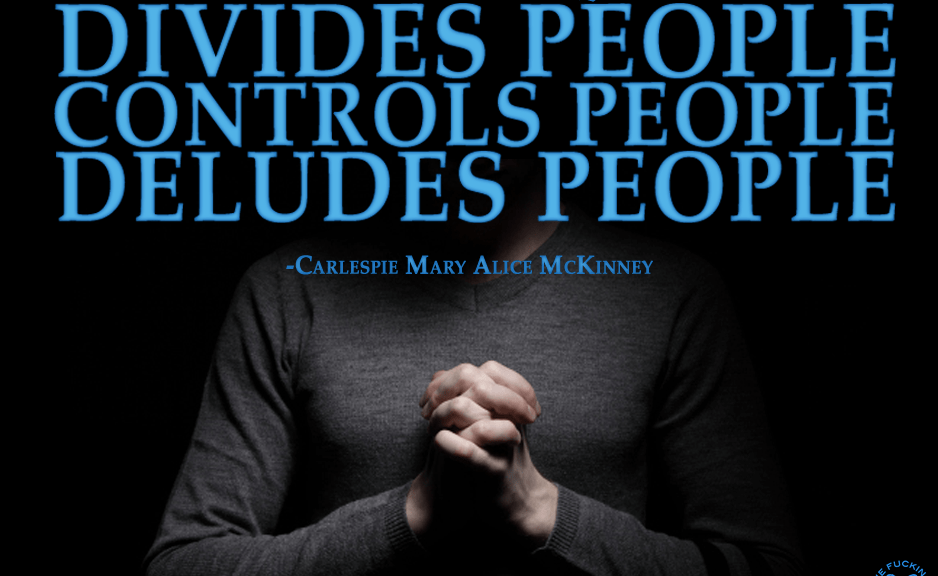 Atheism Divides – controls – deludes Image November 20, 2014 We Fucking Love Atheism Leave a comment Share this: Click to share on X (Opens in new window) X Click to share on Facebook (Opens in new window) Facebook Click to share on Pinterest (Opens in new window) Pinterest Click to share on Tumblr (Opens in new window) Tumblr Click to share on Reddit (Opens in new window) Reddit Related