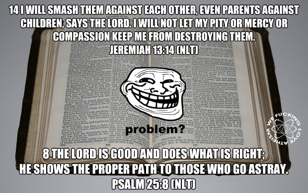 Atheism, Bible Verses Problem? Good or bad? Image November 26, 2014 We Fucking Love Atheism Leave a comment Share this: Click to share on X (Opens in new window) X Click to share on Facebook (Opens in new window) Facebook Click to share on Pinterest (Opens in new window) Pinterest Click to share on Tumblr (Opens in new window) Tumblr Click to share on Reddit (Opens in new window) Reddit Related