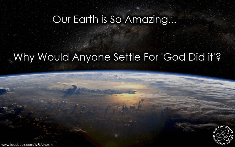 Atheism Our Earth is so amazing Image November 27, 2014 We Fucking Love Atheism Leave a comment Share this: Click to share on X (Opens in new window) X Click to share on Facebook (Opens in new window) Facebook Click to share on Pinterest (Opens in new window) Pinterest Click to share on Tumblr (Opens in new window) Tumblr Click to share on Reddit (Opens in new window) Reddit Related