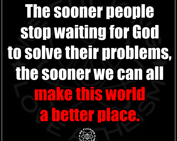 Agnostic, Atheism, Secular Humanist Make this world a better place Image December 19, 2014 We Fucking Love Atheism Leave a comment Share this: Click to share on X (Opens in new window) X Click to share on Facebook (Opens in new window) Facebook Click to share on Pinterest (Opens in new window) Pinterest Click to share on Tumblr (Opens in new window) Tumblr Click to share on Reddit (Opens in new window) Reddit Related