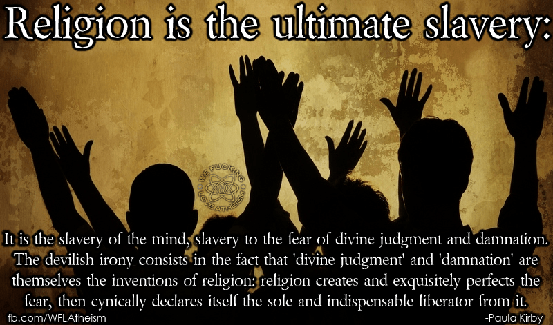 Atheism, Female Voices, Paula Kirby, Quotes Slavery of the mind Image December 19, 2014 We Fucking Love Atheism Leave a comment Share this: Click to share on X (Opens in new window) X Click to share on Facebook (Opens in new window) Facebook Click to share on Pinterest (Opens in new window) Pinterest Click to share on Tumblr (Opens in new window) Tumblr Click to share on Reddit (Opens in new window) Reddit Related