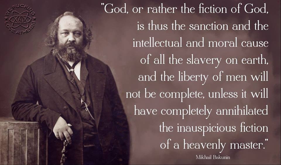 Atheism, Mikhail Bakunin, Quotes The fiction of god Image December 19, 2014 We Fucking Love Atheism Leave a comment Share this: Click to share on X (Opens in new window) X Click to share on Facebook (Opens in new window) Facebook Click to share on Pinterest (Opens in new window) Pinterest Click to share on Tumblr (Opens in new window) Tumblr Click to share on Reddit (Opens in new window) Reddit Related