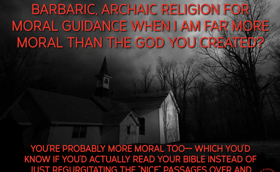 Atheism, Bible Verses More moral than god Image December 2, 2014 We Fucking Love Atheism Leave a comment