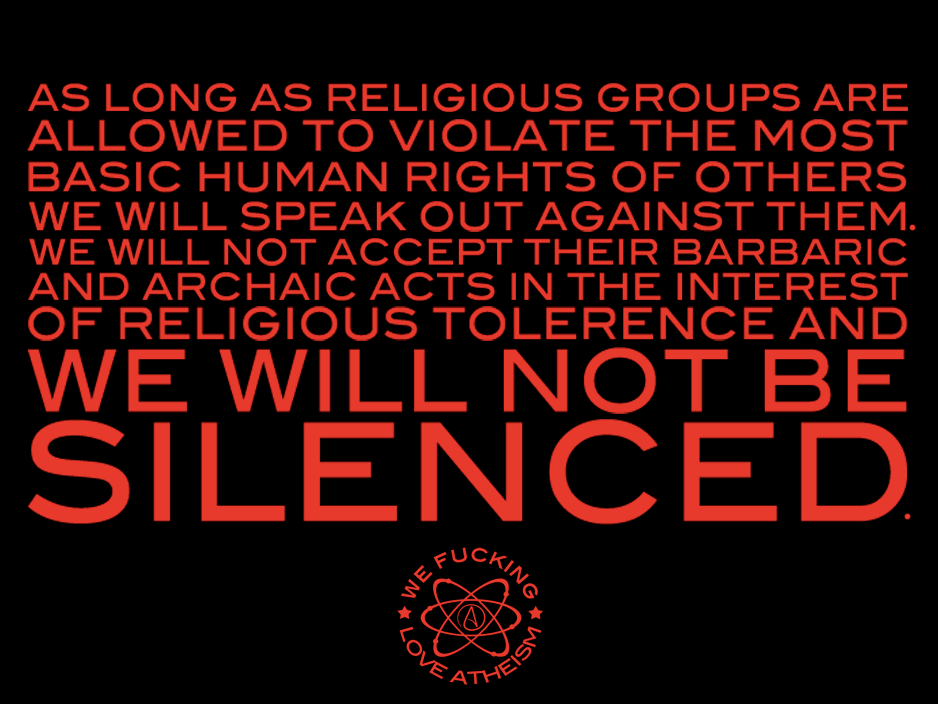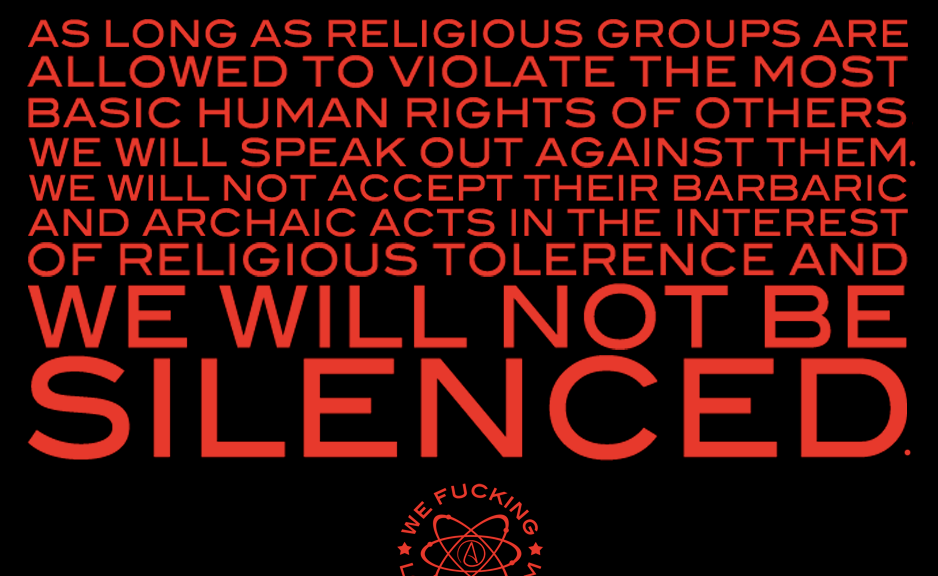 Atheism, Equality We will not be silenced Image January 31, 2015 We Fucking Love Atheism Leave a comment
