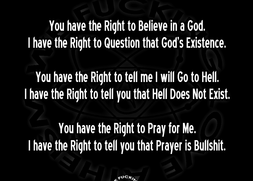 Atheism I have the right Image January 6, 2015 We Fucking Love Atheism Leave a comment Share this: Click to share on X (Opens in new window) X Click to share on Facebook (Opens in new window) Facebook Click to share on Pinterest (Opens in new window) Pinterest Click to share on Tumblr (Opens in new window) Tumblr Click to share on Reddit (Opens in new window) Reddit Related