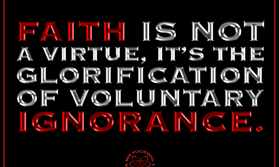 Atheism Voluntary Ignorance Image January 7, 2015 We Fucking Love Atheism Leave a comment Share this: Click to share on X (Opens in new window) X Click to share on Facebook (Opens in new window) Facebook Click to share on Pinterest (Opens in new window) Pinterest Click to share on Tumblr (Opens in new window) Tumblr Click to share on Reddit (Opens in new window) Reddit Related