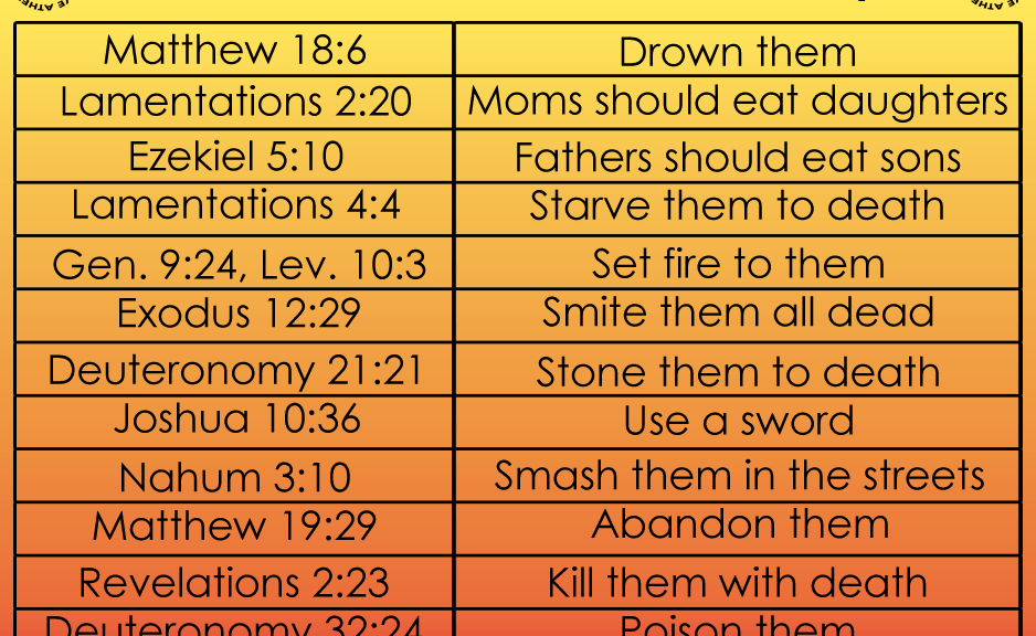 Atheism, Bible Verses Kill them with death Image January 8, 2015 We Fucking Love Atheism Leave a comment Share this: Click to share on X (Opens in new window) X Click to share on Facebook (Opens in new window) Facebook Click to share on Pinterest (Opens in new window) Pinterest Click to share on Tumblr (Opens in new window) Tumblr Click to share on Reddit (Opens in new window) Reddit Related