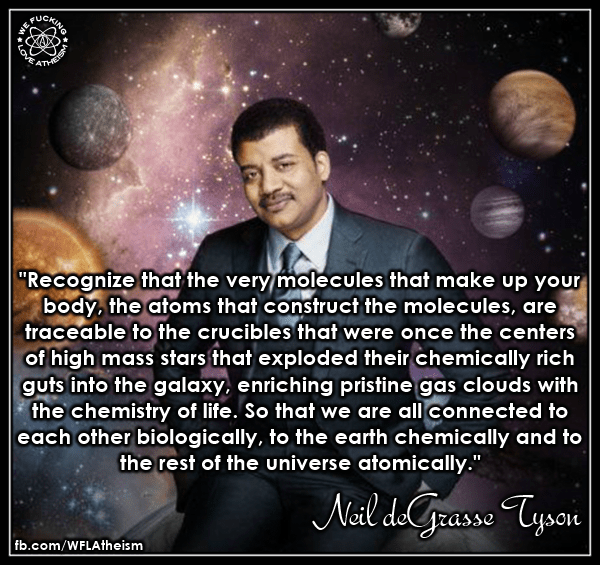 Agnostic, Atheism, Neil deGrasse Tyson, Quotes, Science The chemistry of life Image January 28, 2015 We Fucking Love Atheism Leave a comment Share this: Click to share on X (Opens in new window) X Click to share on Facebook (Opens in new window) Facebook Click to share on Pinterest (Opens in new window) Pinterest Click to share on Tumblr (Opens in new window) Tumblr Click to share on Reddit (Opens in new window) Reddit Related