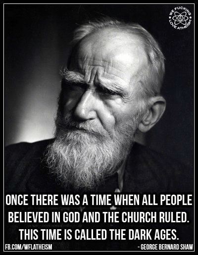 Atheism, George Bernard Shaw, Quotes The dark ages Image January 28, 2015 We Fucking Love Atheism Leave a comment Share this: Click to share on X (Opens in new window) X Click to share on Facebook (Opens in new window) Facebook Click to share on Pinterest (Opens in new window) Pinterest Click to share on Tumblr (Opens in new window) Tumblr Click to share on Reddit (Opens in new window) Reddit Related