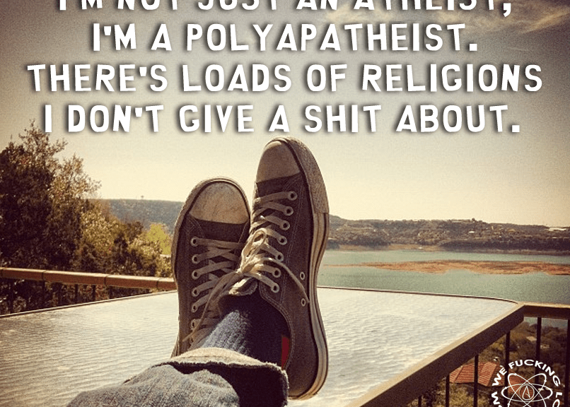 Atheism, Humor I’m a polyapatheist Image February 19, 2015 We Fucking Love Atheism Leave a comment Share this: Click to share on X (Opens in new window) X Click to share on Facebook (Opens in new window) Facebook Click to share on Pinterest (Opens in new window) Pinterest Click to share on Tumblr (Opens in new window) Tumblr Click to share on Reddit (Opens in new window) Reddit Related