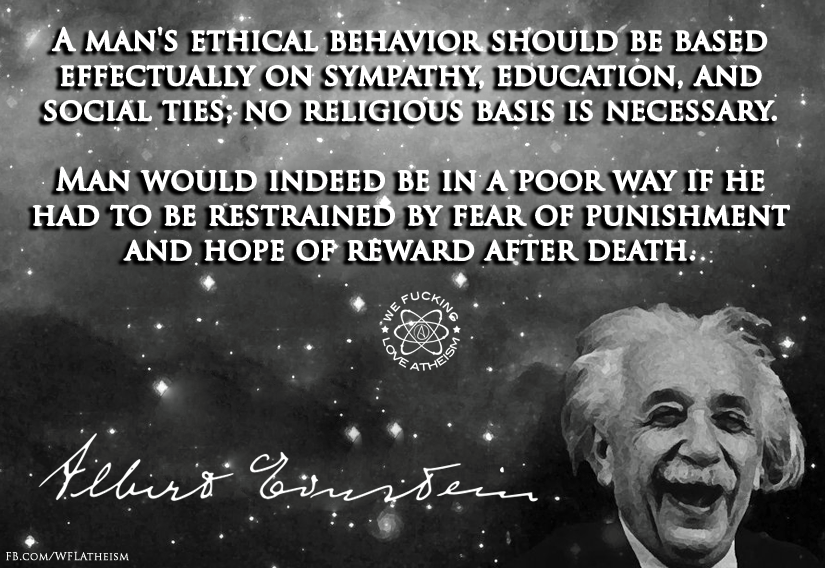 Agnostic, Albert Einstein, Atheism, Quotes, Science Ethical behavior Image February 27, 2015 We Fucking Love Atheism Leave a comment Share this: Click to share on X (Opens in new window) X Click to share on Facebook (Opens in new window) Facebook Click to share on Pinterest (Opens in new window) Pinterest Click to share on Tumblr (Opens in new window) Tumblr Click to share on Reddit (Opens in new window) Reddit Related