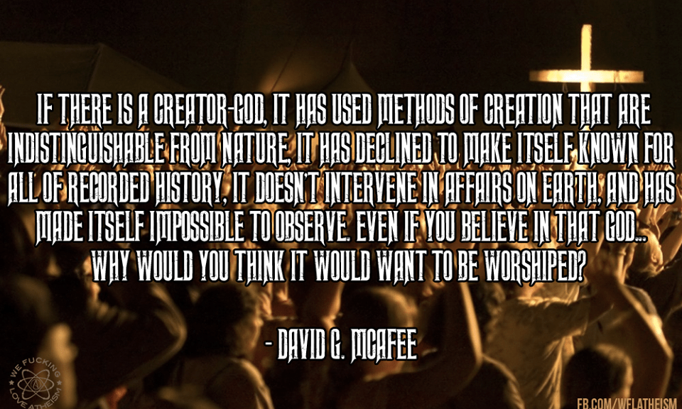 Atheism, David G. McAfee, Quotes Indistinguishable from nature Image February 27, 2015 We Fucking Love Atheism Leave a comment Share this: Click to share on X (Opens in new window) X Click to share on Facebook (Opens in new window) Facebook Click to share on Pinterest (Opens in new window) Pinterest Click to share on Tumblr (Opens in new window) Tumblr Click to share on Reddit (Opens in new window) Reddit Related