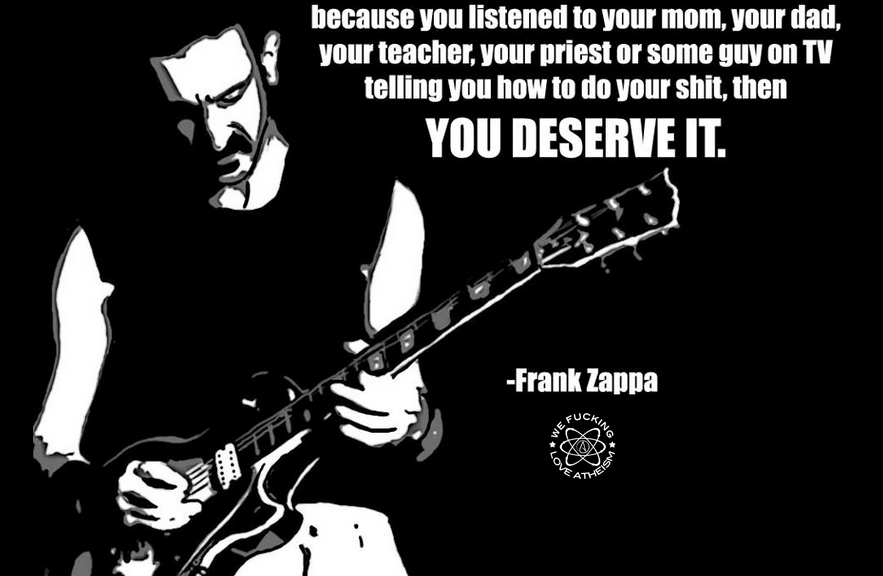 Atheism, Frank Zappa, Humor, Quotes You deserve it Image February 27, 2015 We Fucking Love Atheism Leave a comment Share this: Click to share on X (Opens in new window) X Click to share on Facebook (Opens in new window) Facebook Click to share on Pinterest (Opens in new window) Pinterest Click to share on Tumblr (Opens in new window) Tumblr Click to share on Reddit (Opens in new window) Reddit Related