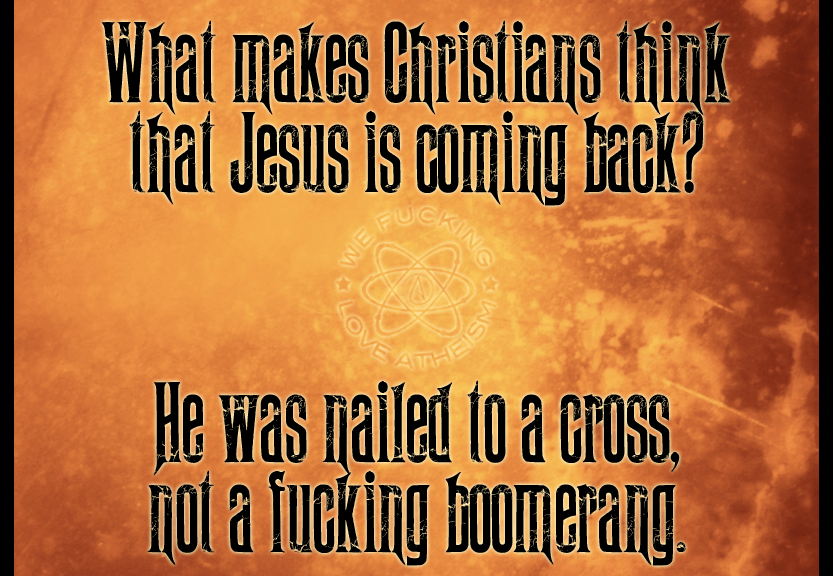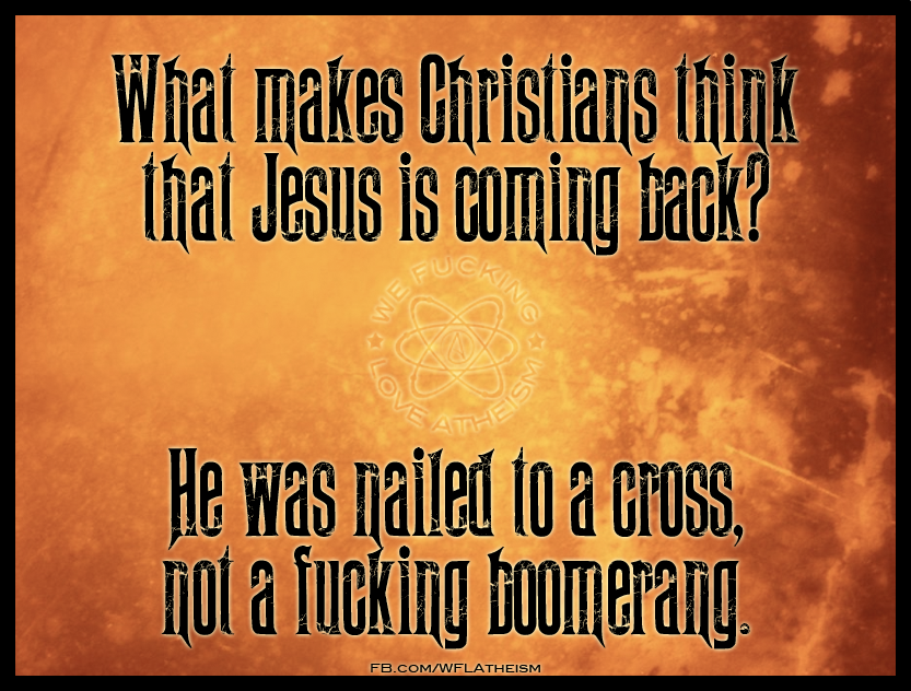 Atheism, Humor Not a fucking boomerang Image February 27, 2015 We Fucking Love Atheism Leave a comment