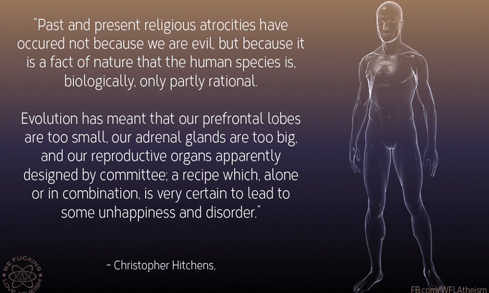 Atheism, Christopher Hitchens, Quotes Unhappiness and disorder Image March 4, 2015 We Fucking Love Atheism Leave a comment Share this: Click to share on X (Opens in new window) X Click to share on Facebook (Opens in new window) Facebook Click to share on Pinterest (Opens in new window) Pinterest Click to share on Tumblr (Opens in new window) Tumblr Click to share on Reddit (Opens in new window) Reddit Related