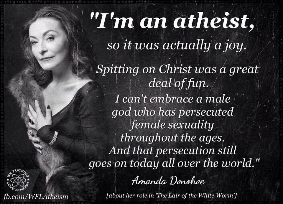 Amanda Donohoe, Atheism, Female Voices, Quotes I’m an atheist Image March 6, 2015 We Fucking Love Atheism Leave a comment Share this: Click to share on X (Opens in new window) X Click to share on Facebook (Opens in new window) Facebook Click to share on Pinterest (Opens in new window) Pinterest Click to share on Tumblr (Opens in new window) Tumblr Click to share on Reddit (Opens in new window) Reddit Related