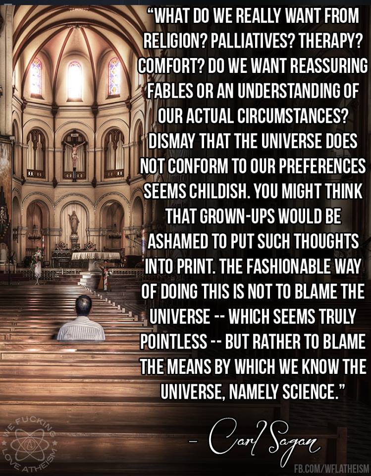 Agnostic, Atheism, Carl Sagan, Quotes Namely science Image March 6, 2015 We Fucking Love Atheism Leave a comment Share this: Click to share on X (Opens in new window) X Click to share on Facebook (Opens in new window) Facebook Click to share on Pinterest (Opens in new window) Pinterest Click to share on Tumblr (Opens in new window) Tumblr Click to share on Reddit (Opens in new window) Reddit Related