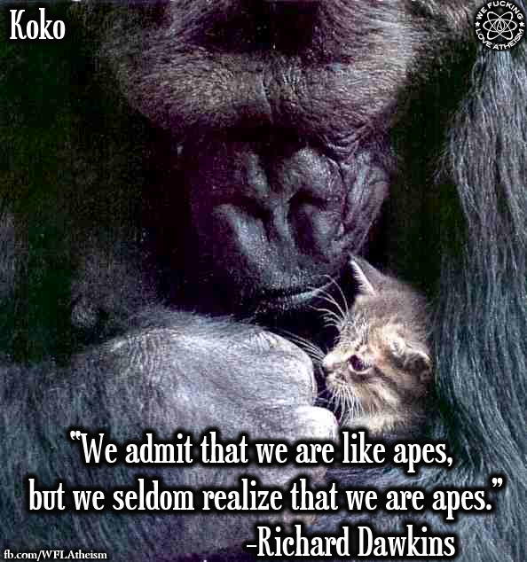 Agnostic, Atheism, Quotes, Richard Dawkins, Secular Humanist We are apes Image March 6, 2015 We Fucking Love Atheism Leave a comment Share this: Click to share on X (Opens in new window) X Click to share on Facebook (Opens in new window) Facebook Click to share on Pinterest (Opens in new window) Pinterest Click to share on Tumblr (Opens in new window) Tumblr Click to share on Reddit (Opens in new window) Reddit Related