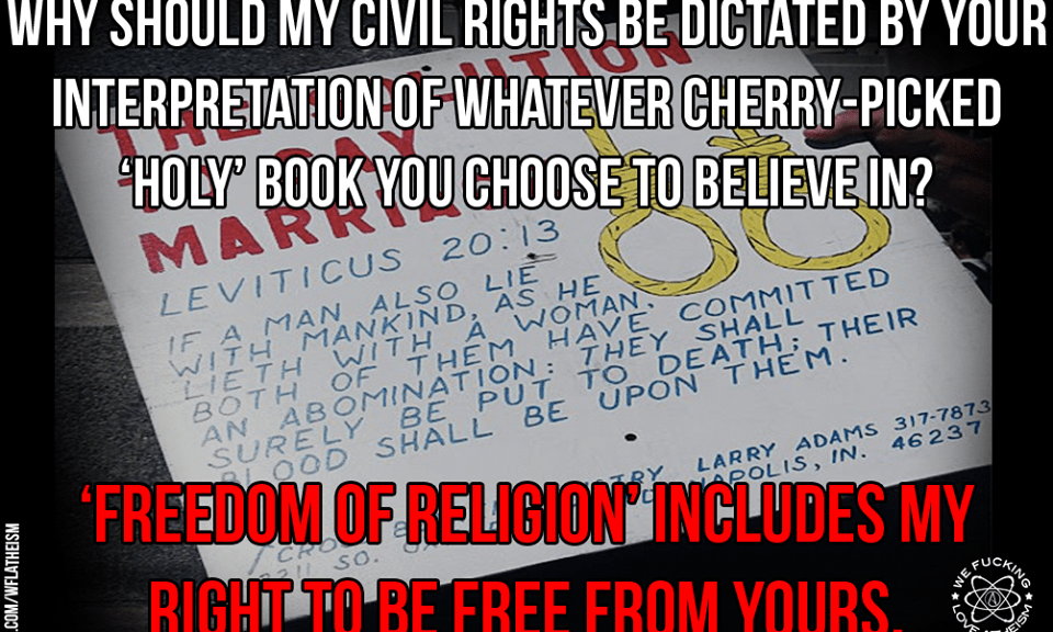 Agnostic, Atheism, Equality My right to be free Image March 8, 2015 We Fucking Love Atheism Leave a comment Share this: Click to share on X (Opens in new window) X Click to share on Facebook (Opens in new window) Facebook Click to share on Pinterest (Opens in new window) Pinterest Click to share on Tumblr (Opens in new window) Tumblr Click to share on Reddit (Opens in new window) Reddit Related