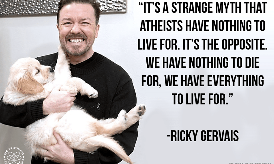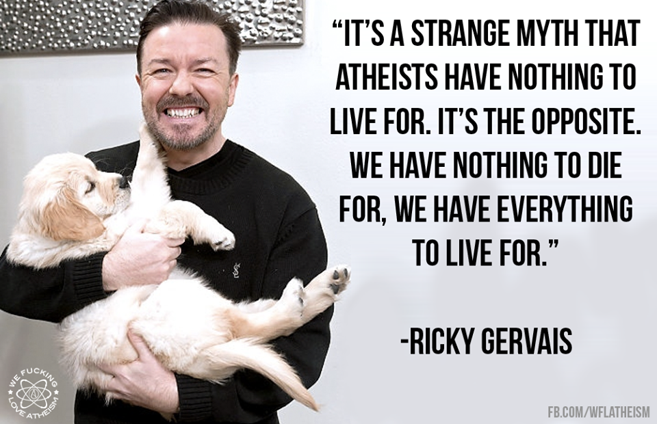 Atheism, Quotes, Ricky Gervais We have everything to live for Image March 8, 2015 We Fucking Love Atheism Leave a comment Share this: Click to share on X (Opens in new window) X Click to share on Facebook (Opens in new window) Facebook Click to share on Pinterest (Opens in new window) Pinterest Click to share on Tumblr (Opens in new window) Tumblr Click to share on Reddit (Opens in new window) Reddit Related