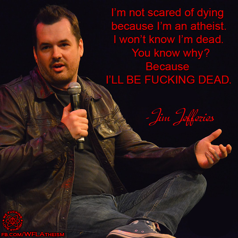 Atheism, Humor, Jim Jefferies, Quotes I’ll be fucking dead! Image March 11, 2015 We Fucking Love Atheism Leave a comment Share this: Click to share on X (Opens in new window) X Click to share on Facebook (Opens in new window) Facebook Click to share on Pinterest (Opens in new window) Pinterest Click to share on Tumblr (Opens in new window) Tumblr Click to share on Reddit (Opens in new window) Reddit Related