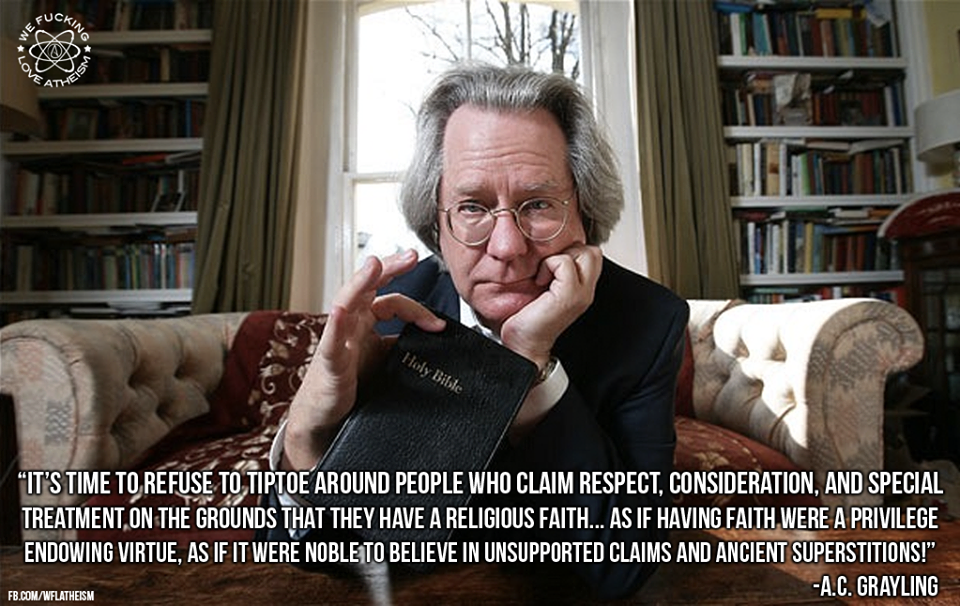 A.C. Grayling, Atheism, Quotes Ancient superstitions Image March 12, 2015 We Fucking Love Atheism Leave a comment Share this: Click to share on X (Opens in new window) X Click to share on Facebook (Opens in new window) Facebook Click to share on Pinterest (Opens in new window) Pinterest Click to share on Tumblr (Opens in new window) Tumblr Click to share on Reddit (Opens in new window) Reddit Related