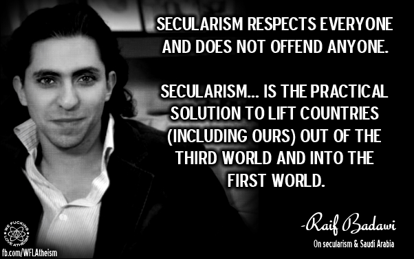Atheism, Islam, Raif Badawi, Secular Humanist Secularism Image March 12, 2015 We Fucking Love Atheism Leave a comment Share this: Click to share on X (Opens in new window) X Click to share on Facebook (Opens in new window) Facebook Click to share on Pinterest (Opens in new window) Pinterest Click to share on Tumblr (Opens in new window) Tumblr Click to share on Reddit (Opens in new window) Reddit Related