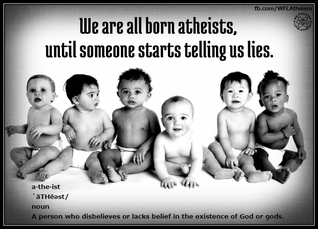 Atheism We are all born atheists Image March 12, 2015 We Fucking Love Atheism Leave a comment Share this: Click to share on X (Opens in new window) X Click to share on Facebook (Opens in new window) Facebook Click to share on Pinterest (Opens in new window) Pinterest Click to share on Tumblr (Opens in new window) Tumblr Click to share on Reddit (Opens in new window) Reddit Related