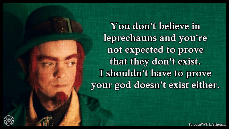 Atheism, Humor You don’t believe in leprechauns… Image March 17, 2015 We Fucking Love Atheism Leave a comment Share this: Click to share on X (Opens in new window) X Click to share on Facebook (Opens in new window) Facebook Click to share on Pinterest (Opens in new window) Pinterest Click to share on Tumblr (Opens in new window) Tumblr Click to share on Reddit (Opens in new window) Reddit Related