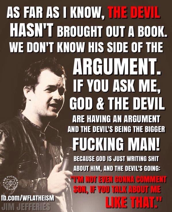 Atheism, Humor, Jim Jefferies, Quotes I’m not even going to comment son Image March 25, 2015 We Fucking Love Atheism Leave a comment Share this: Click to share on X (Opens in new window) X Click to share on Facebook (Opens in new window) Facebook Click to share on Pinterest (Opens in new window) Pinterest Click to share on Tumblr (Opens in new window) Tumblr Click to share on Reddit (Opens in new window) Reddit Related