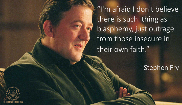 Agnostic, Atheism, Quotes, Stephen Fry Blasphemy Image April 16, 2015 We Fucking Love Atheism Leave a comment Share this: Click to share on X (Opens in new window) X Click to share on Facebook (Opens in new window) Facebook Click to share on Pinterest (Opens in new window) Pinterest Click to share on Tumblr (Opens in new window) Tumblr Click to share on Reddit (Opens in new window) Reddit Related