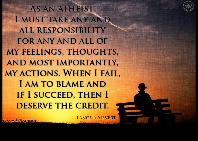 Atheism, Lance A. Sievert, Quotes Responsibility Image April 16, 2015 We Fucking Love Atheism Leave a comment Share this: Click to share on X (Opens in new window) X Click to share on Facebook (Opens in new window) Facebook Click to share on Pinterest (Opens in new window) Pinterest Click to share on Tumblr (Opens in new window) Tumblr Click to share on Reddit (Opens in new window) Reddit Related
