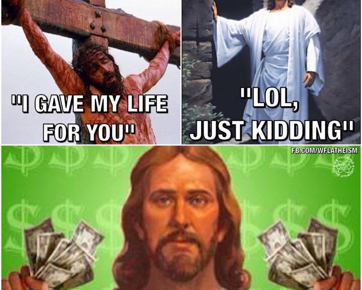 Agnostic, Atheism, Humor Thanks for the ca$h Image April 16, 2015 We Fucking Love Atheism Leave a comment Share this: Click to share on X (Opens in new window) X Click to share on Facebook (Opens in new window) Facebook Click to share on Pinterest (Opens in new window) Pinterest Click to share on Tumblr (Opens in new window) Tumblr Click to share on Reddit (Opens in new window) Reddit Related